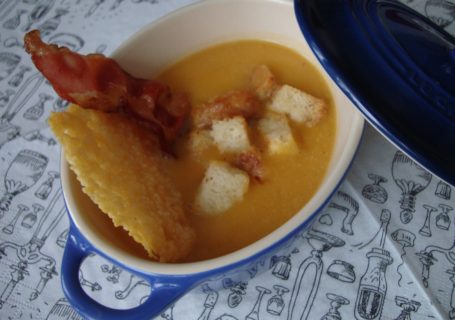 Dýňová polévka se slaninou a parmazánovými chipsy
